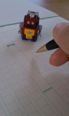 さっそく原稿用紙の上を歩かせてみました(笑)。